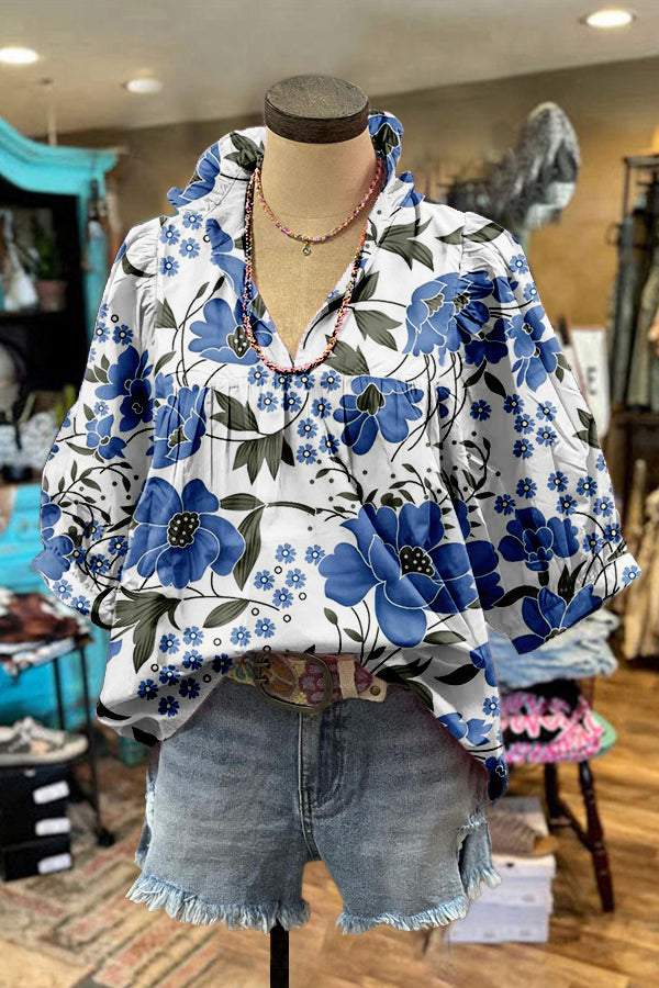 Sweet Floral Print Puff Sleeve Blouse