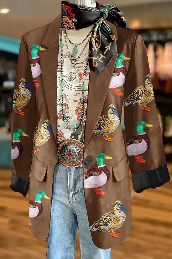 Shiny Camping Duck Print Blazer