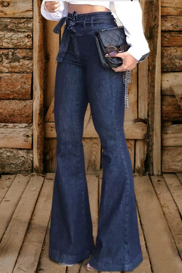 Stay on trend this season in our new retro, flared jeans. We especially love the bleached fabric and think this piece will be a new favorite in your closet!