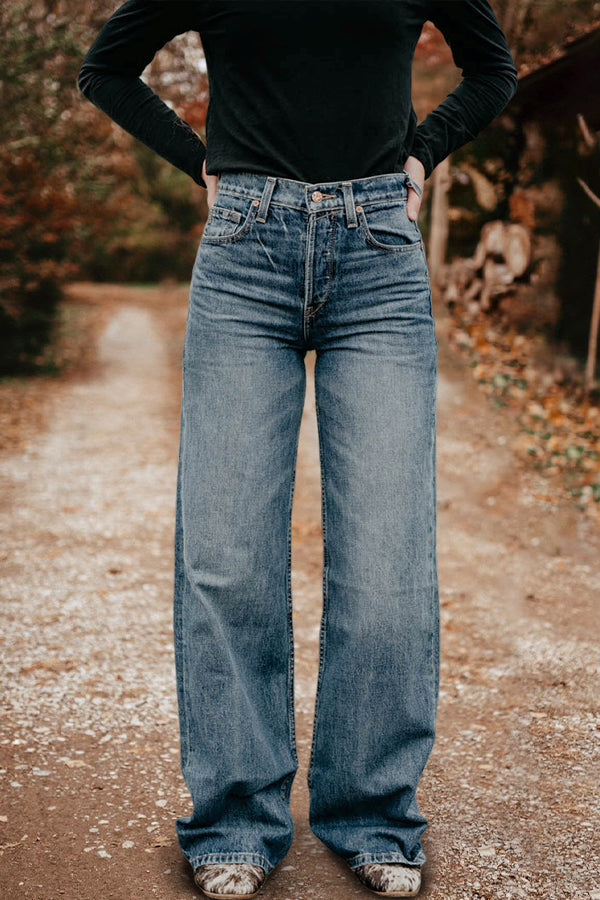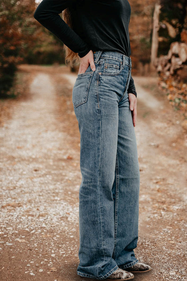 Stay on trend this season in our new retro, wide leg jeans. We especially love the bleached fabric and think this piece will be a new favorite in your closet!