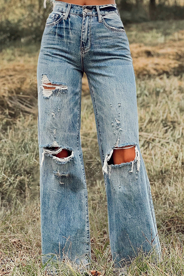 Vintage Washed Ripped Wide Leg Jeans