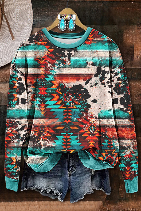 Stay on trend this season in our new casual, round neck sweatshirt. We especially love the graphic print fabric and think this piece will be a new favorite in your closet!