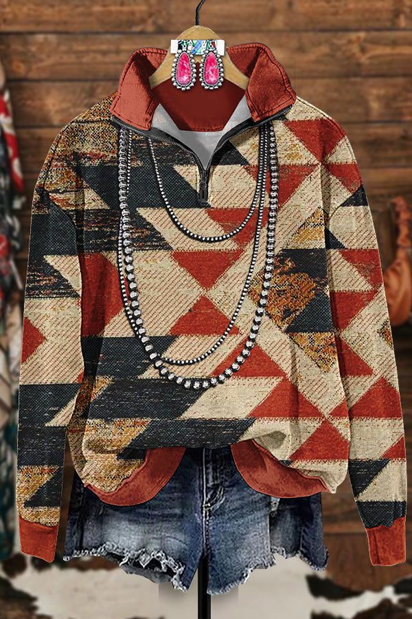 Stay on trend this season in our new casual, v neck sweatshirt. We especially love the graphic print fabric and think this piece will be a new favorite in your closet!