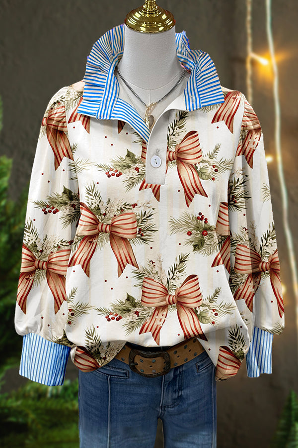 Christmas Bow Print Ruffle Top