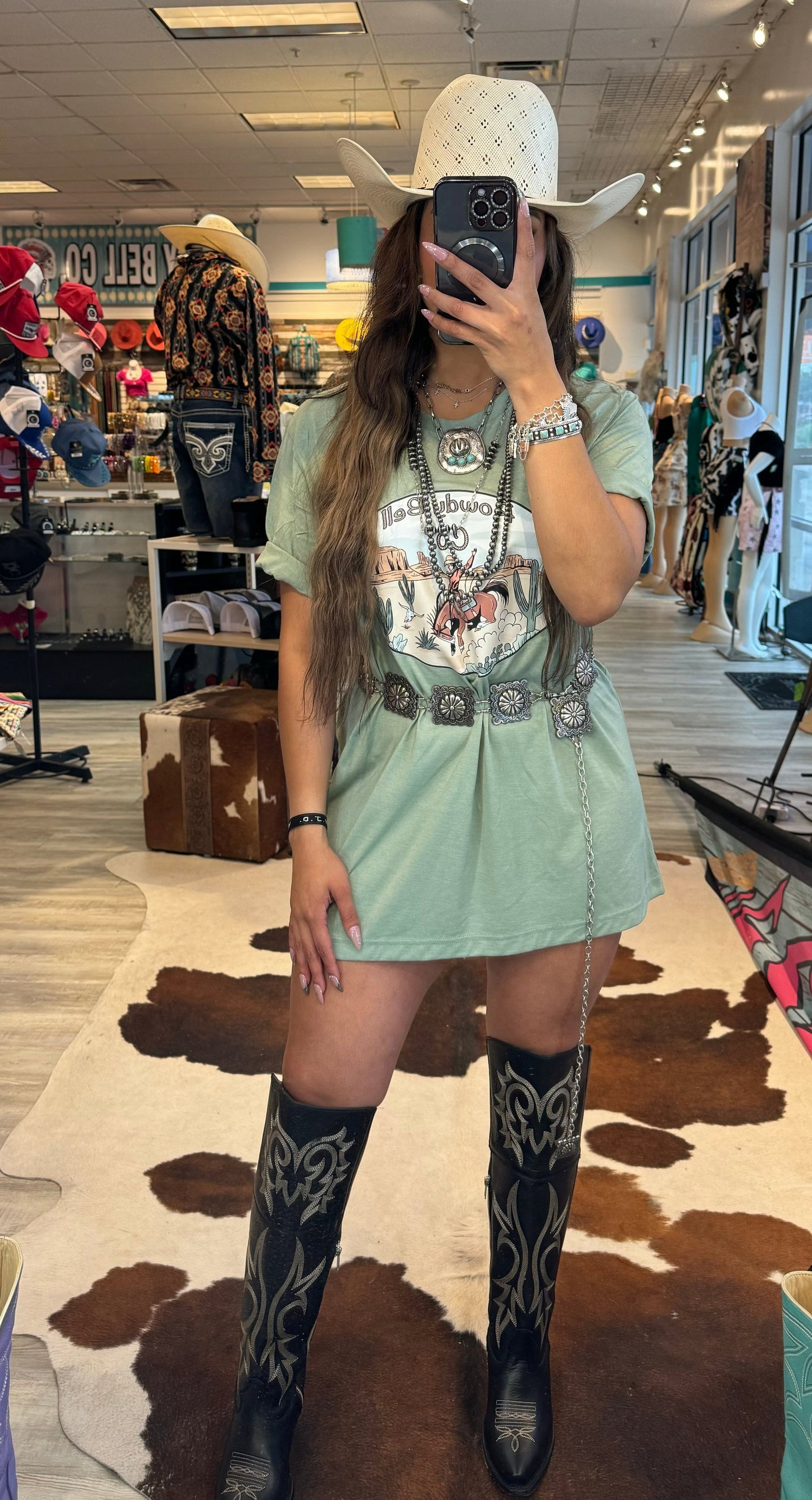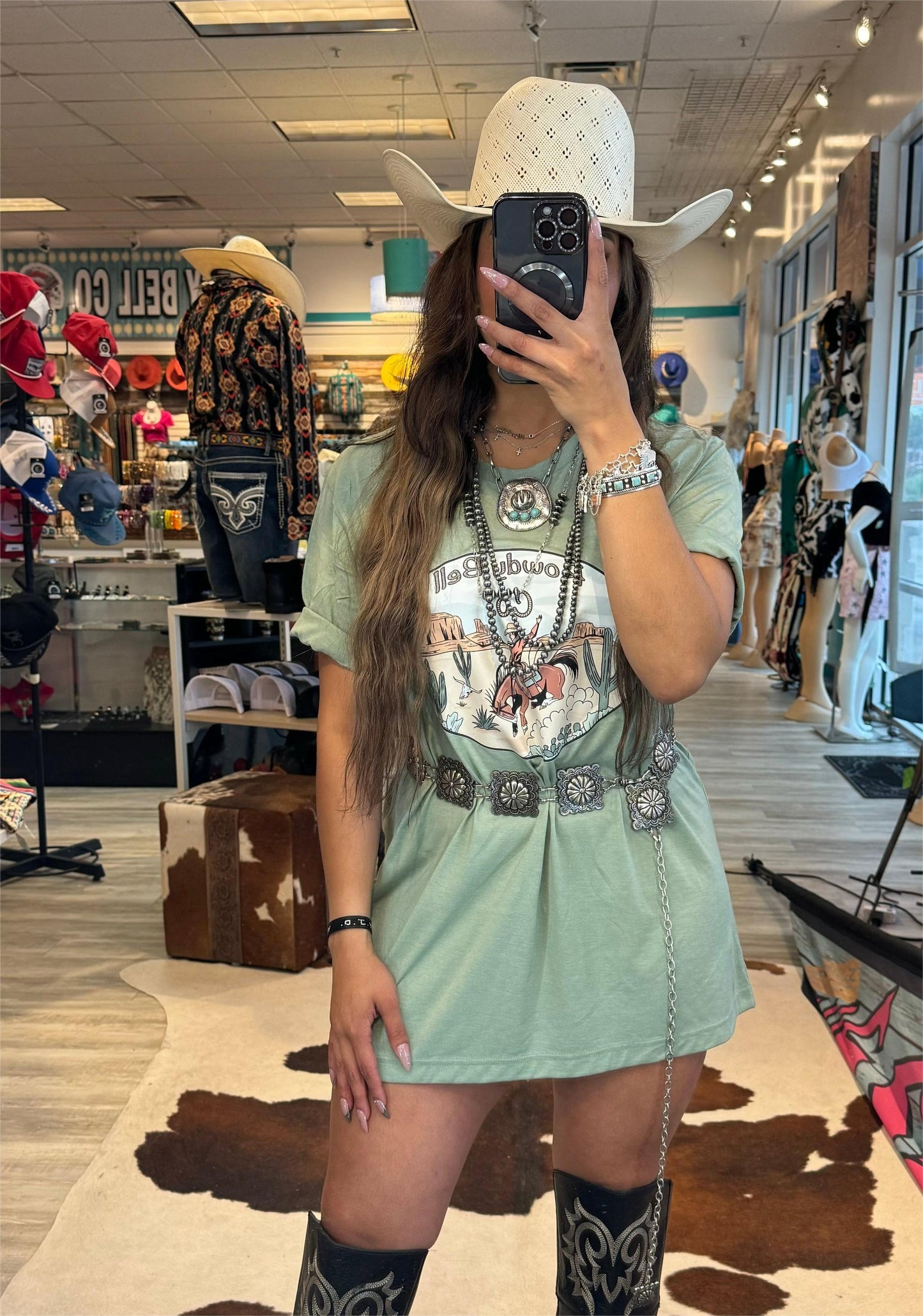 Western Casual Cowboy Printed T-Shirt Dress