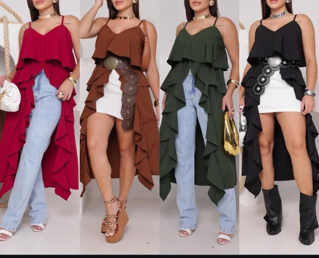 Boho Ruffled Longline Camisole-Four Colors