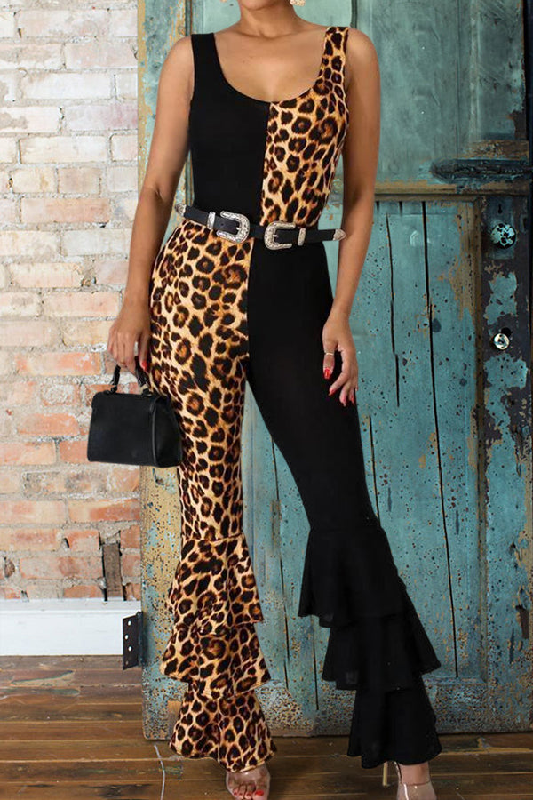 Vintage Leopard Print Multi-Layer Jumpsuit (No Belt)