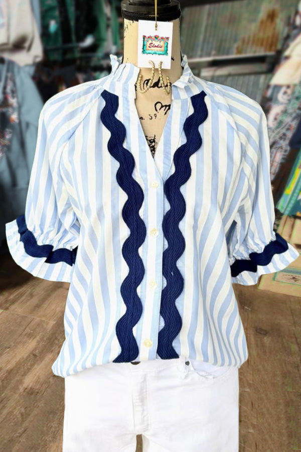 elodieboutique Striped Ric Rac Puff Sleeve Top ID6932NStyle: FashionType: TopMaterial: PolyesterPattern Type: StripedSleeve Length: Short SleeveOccasion: CasualPackage Include: 1*TopNote: 1.Please strictly follow the size chart to select the size. Do not select according to your habits.2.The size may have 2-3cm differs due to manual measurement. Please note when you measure.Size(INCH)BustLengthS40.55 25.59 M42.52 25.98 L44.49 26.38 XL47.64 27.17 2XL50.79 27.95 3XL53.94 28.74 36.99