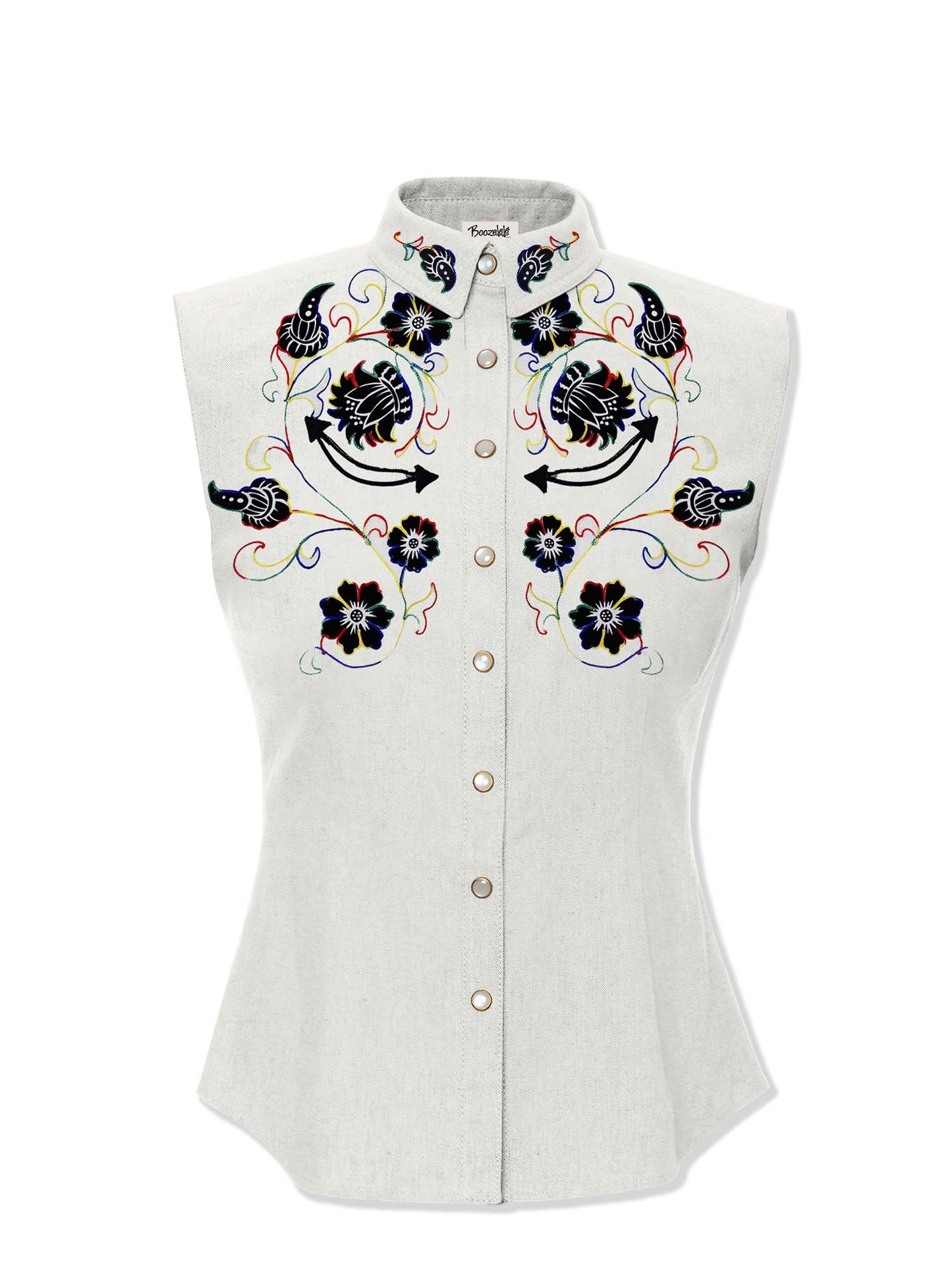 Vintage Flower - 100% Cotton Sleeveless Shirt