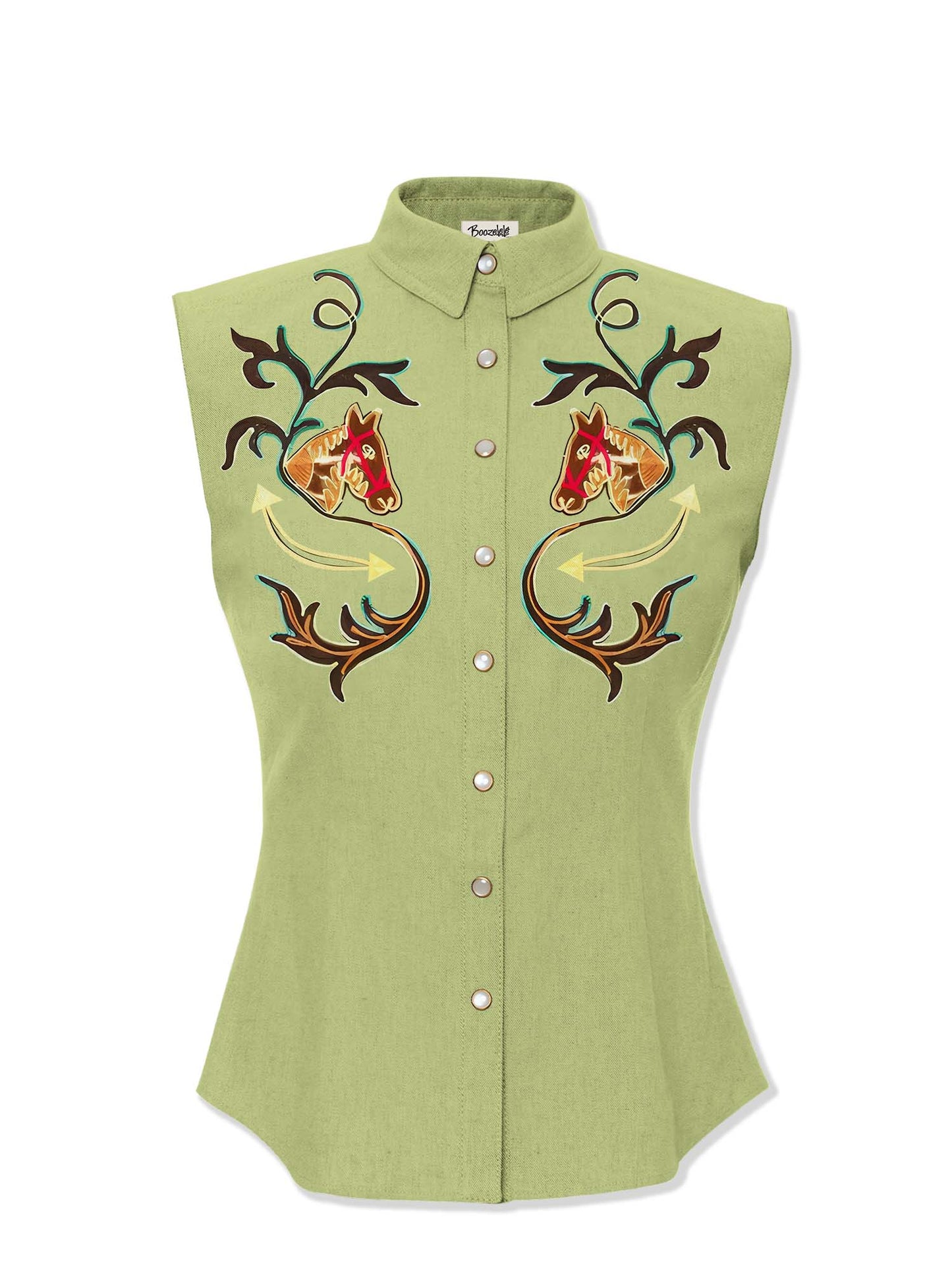Western Vintage Flower And Horse - 100% Cotton Sleeveless Shirt