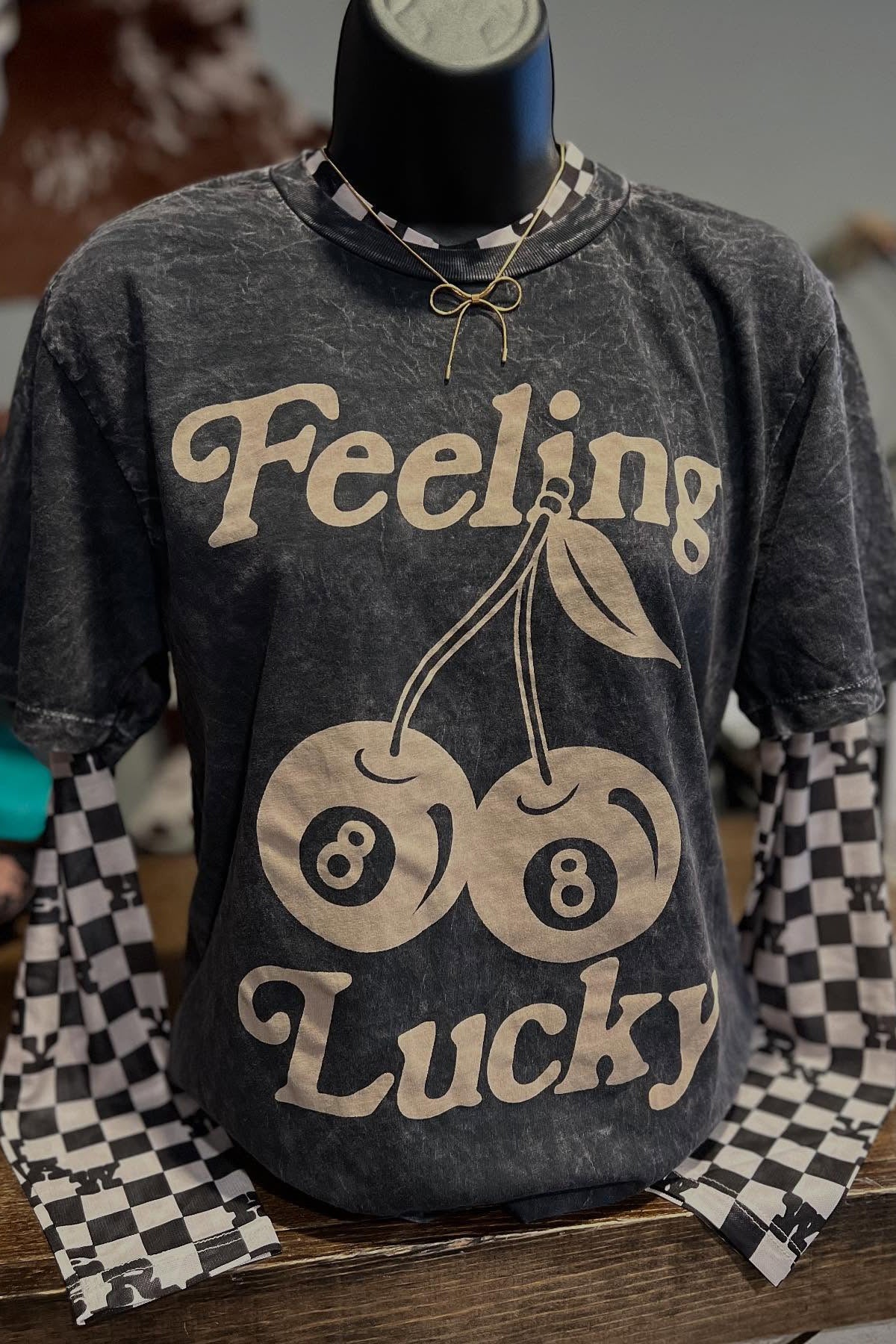 Lucky Feeling Pattern Crew Neck Short Sleeve T-shirt