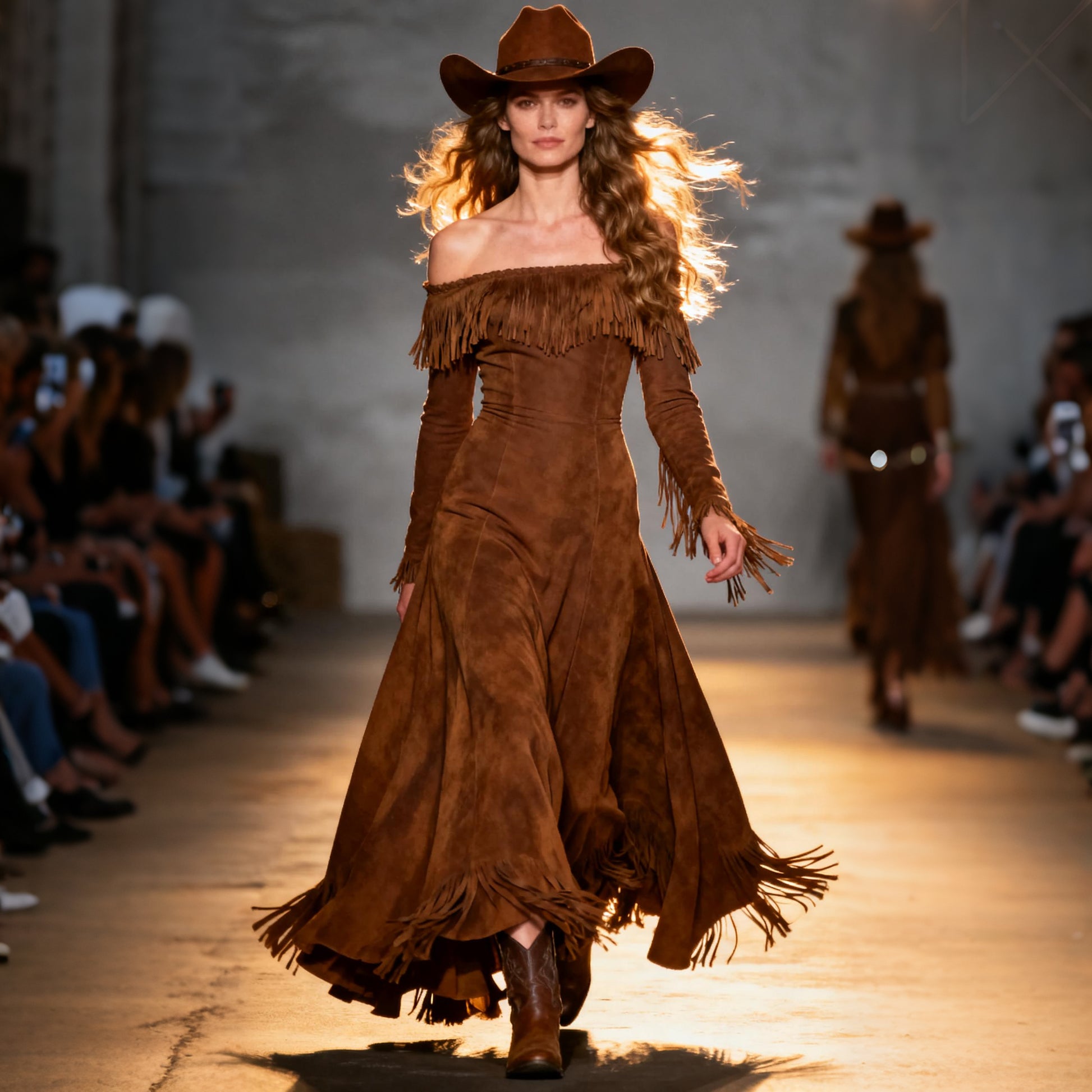 Women's Retro One-Shoulder Tassel Long Sleeve Long Dress