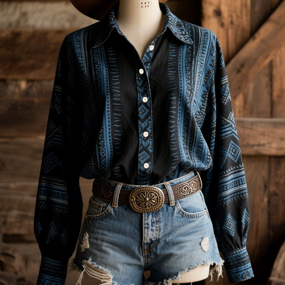 Women's Retro Western Geometric Art Long Sleeve Shirt